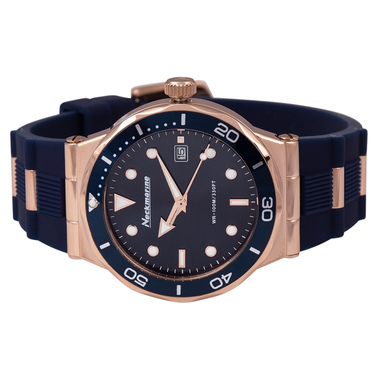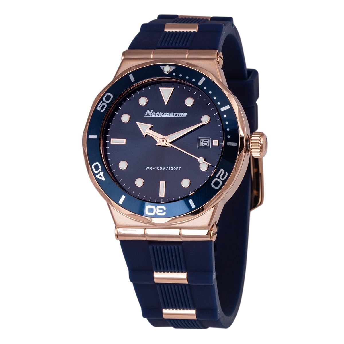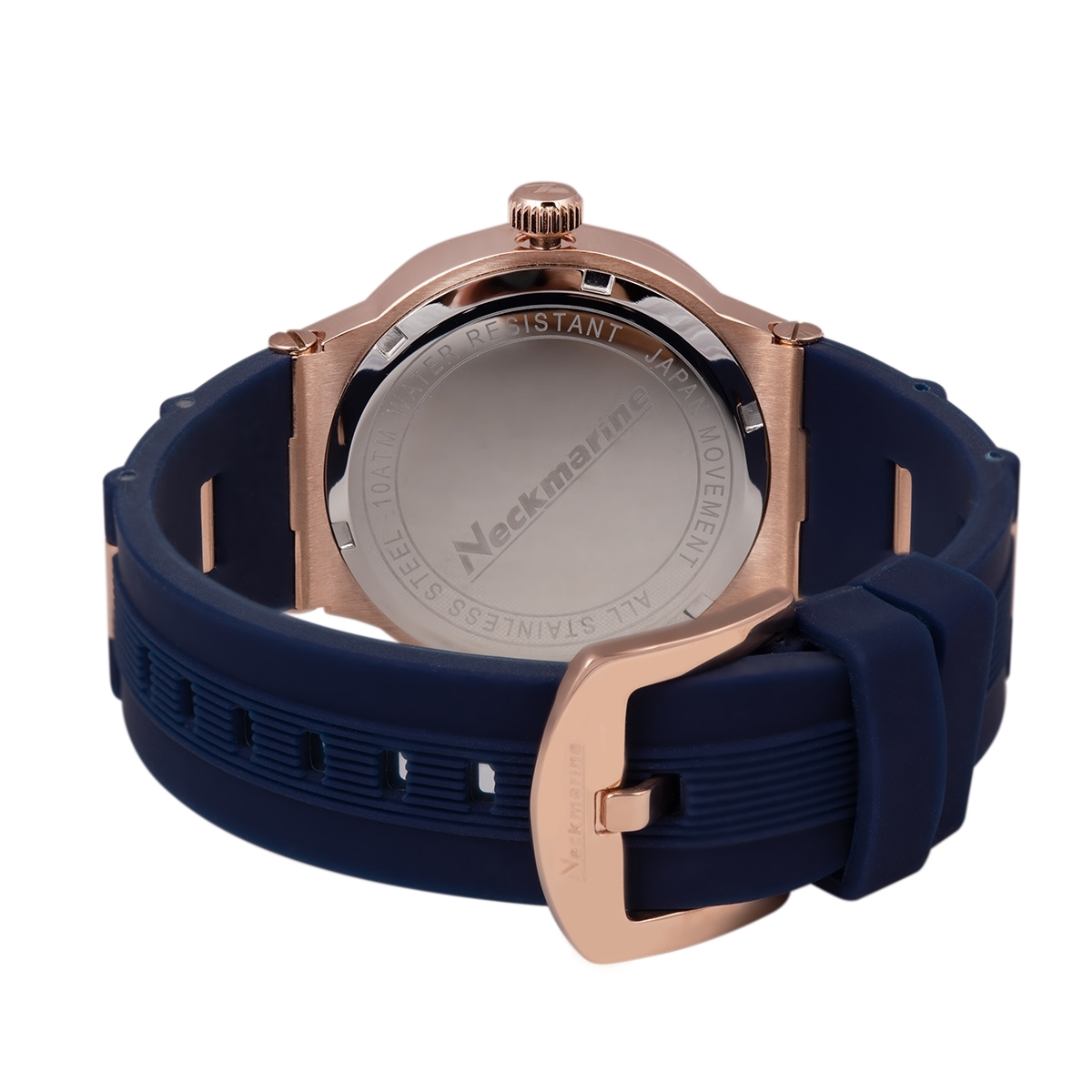 Reloj de acero para mujer de color azul y dorado con pulsera de caucho- Neckmarine - Sport